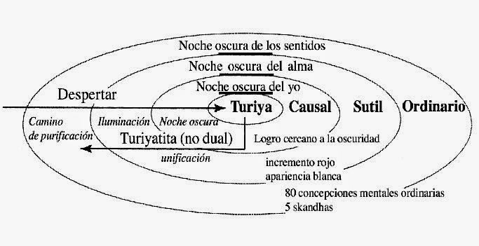 - Misticismo no dual. En el estado no dual o Turiyatita (que en sánscrito significa más allá del cuarto estado), ves claro que el Vacío es forma, y que la forma es Vacío. Ahí, el mundo de la forma observada, y la Vacuidad clara y abierta del "Yo Real Testigo", son vistos como uno (o mejor dicho no dos).