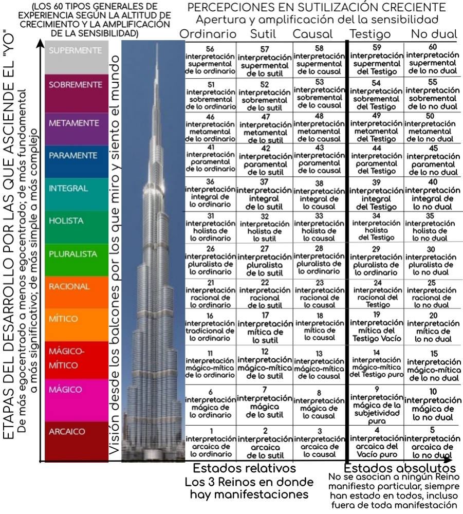 Así que, podemos ver que hay una relación clara entre el crecer y el despertar, entre la evolución de las estructuras de la conciencia y la capacidad de atestiguar más reinos de la realidad.