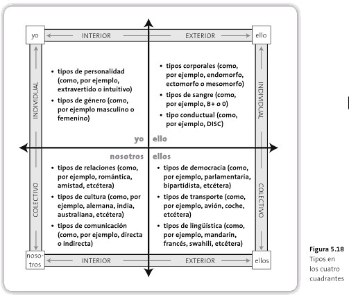 En su libro "Sexo, Ecología, Espiritualidad", Ken Wilber sostiene que todo fenómeno humano consta de cuatro facetas, y no puede ser íntegramente comprendido si no se abordan las cuatro. El fundamento de estas cuatro vertientes de la realidad tiene que ver con los aspectos exterior e interior y sus formas individuales y colectivas.